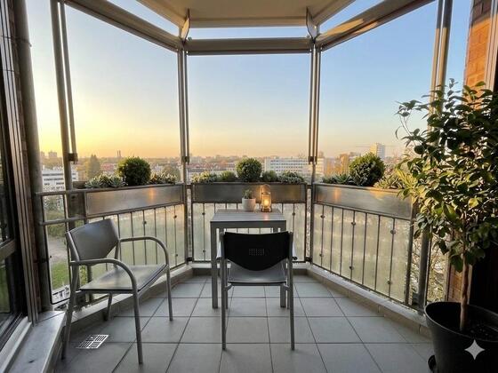 Über den Dächern von Düsseldorf: Moderne lichtdurchflutete 2-Zimmer-Wohnung mit Balkon & Tiefgarage in zentraler Ruhelage